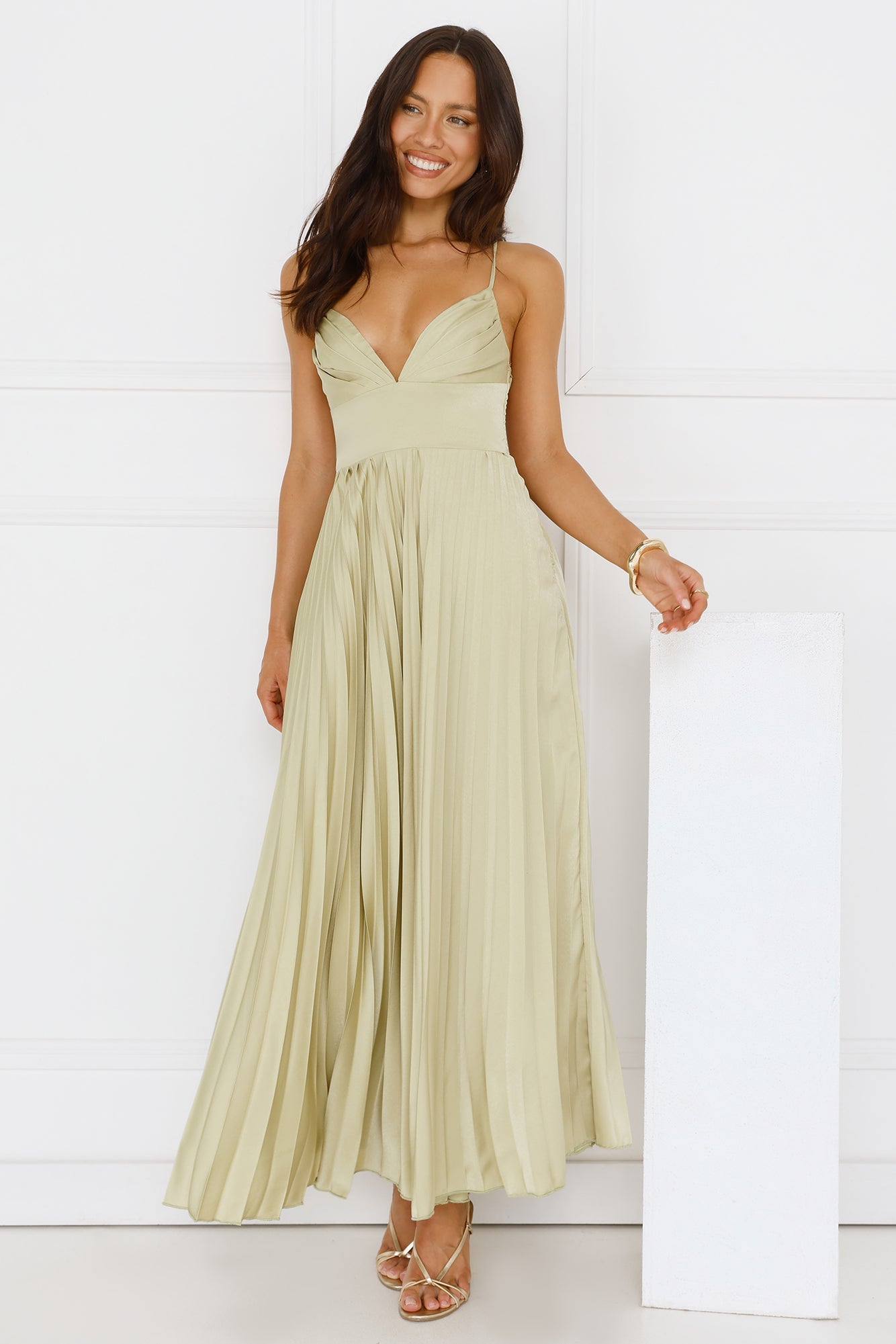 Make an unforgettable entrance in the Exclusive Invite Satin Maxi Dress, featuring a pleated design with a flattering V-neck, a flowy skirt, an elastic back for comfort, and a stunning crisscross back detail for an elegant touch. Style with heels.